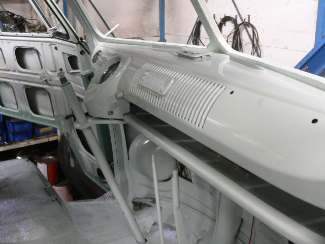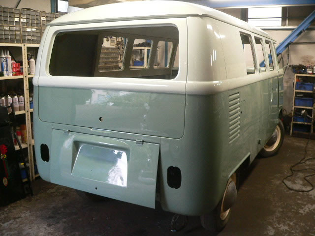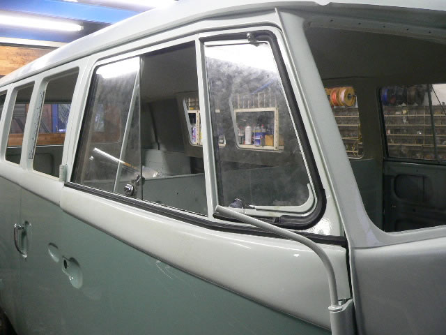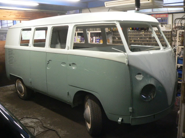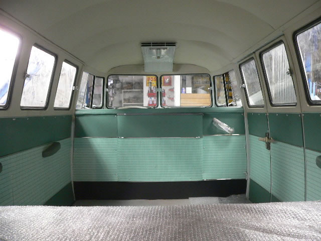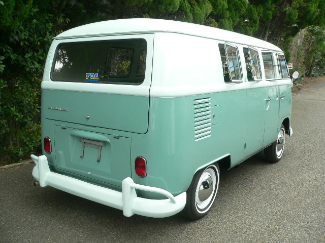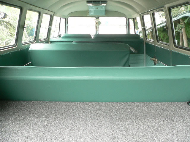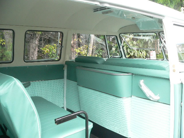 New paint Inside & Outside original color Blue White/ Turquoise. We use good dry condition base BUS. All New Interior. OG VIN style door panel w/ panel moal. Change seat pad to original hair style and recover vintage style seat cover. All New rubbers window, door, cargo door and small pieces. New Safari window installed also had 6 pop out side windows. 1600cc dual port Rebuilt Engine made by TOA. 12V convert Alternater system. Original 14 inch wheel blasted and new paint. New 185-75-14 White ribbon tire and new wheel cap. Chassis black and undercoat painted.