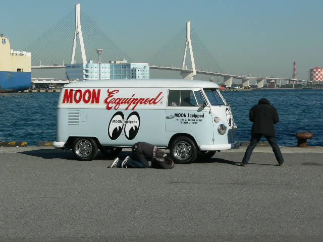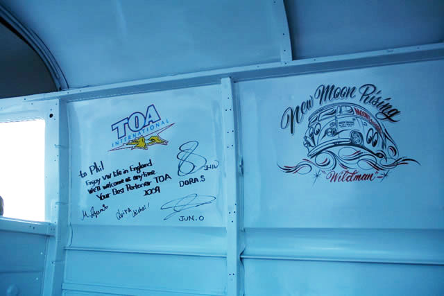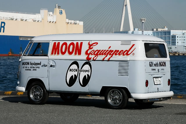 This Panel Van is Phil’s 2nd project. Right hand drive Volkswagen collector Phil found this ’67 Yanase RHD slider model. Phil want to make copy of Mooneyes Equipped Van. Original Mooneyes Equipped Van we made around 1993, so we ask to Mooneyes about this project. Mooneyes told me his private collection is ok to built. We start to body work but Panel van had lot’s of rust, cut rear wells and other problems so we did too many work about it. After finished body & paint we installed original style interior, Speedmaster wheels. For the Mooneyes logos and pinstripe doing The Wildman Ishii Mooneyes same as original Mooneyes Equipped Van. Finished Mooneyes Equipped brother , we show up Yokohama Hot Rod Show. After show we shipped to Phil’s home town England. This project feature on Street VWs magazine. We lost pictures of body work, paint and put back together so we use only daily topics pictures and Dai Katsumura gave us his pictures.