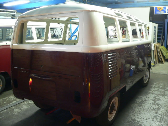 Guys name is Phil. He is business man from UK and traveling back in forth Japan and England. He is very serious RHD (right hand drive) Volkswagen collector and found the Yanase Type2 21W DX BUS in Japan. Then, he brought this 21W to our shop. His project was restoring this 21W BUS and bring back to his home town in UK. 21W BUS was very good condition so we decided to paint outside only and doing all new interior job, rebuilt engine. We did all correct original style finish and take pictures with his son that’s feature on Street VWs magazine. After priceless memories in Japan, we shipped this 21W Bus to his home town in England.