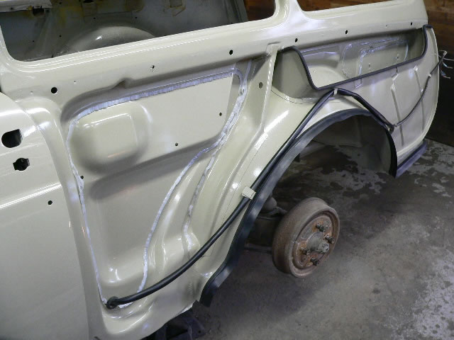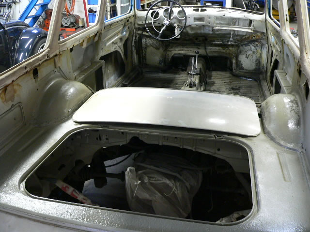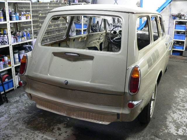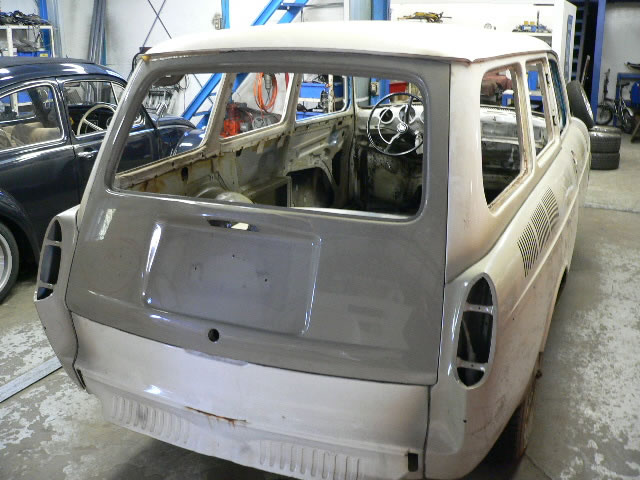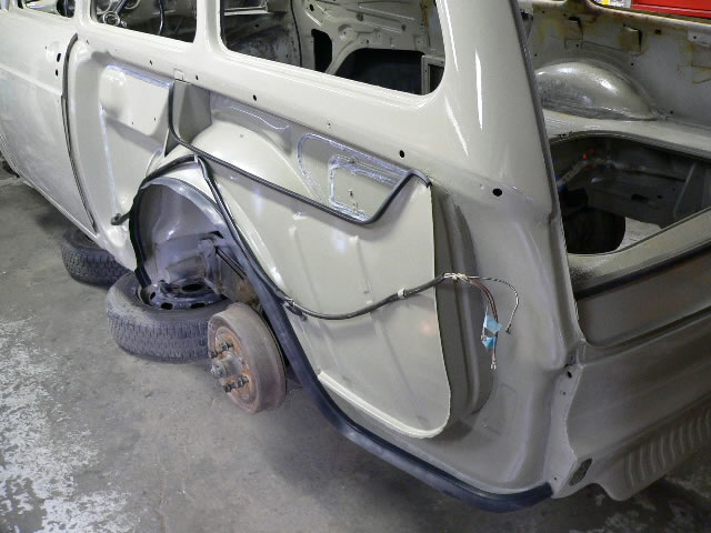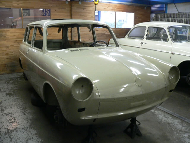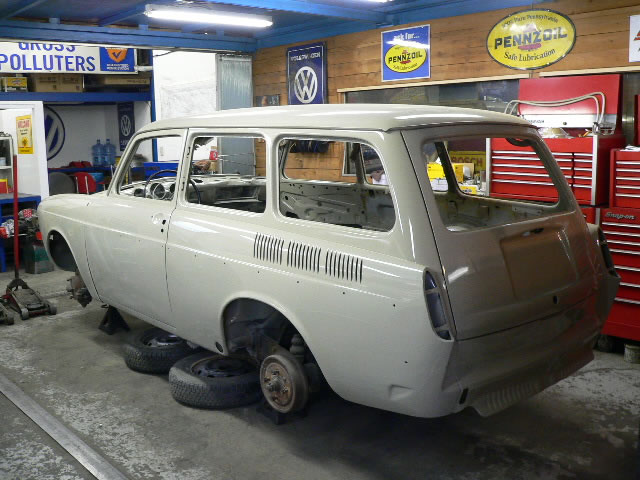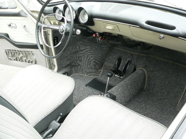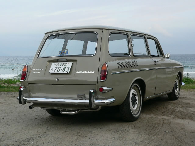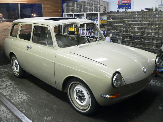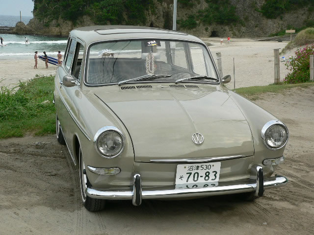 Original condition ’69 Automatic, Sunroof Variant based ’64 1500S style convert. We changed front fender to 64-65 NOS, early fuel tank, doors, rear gate and make 1500S style then painted L568 Seasand color. For interior. New original style Off White perfprated. Good used 64-65 Off White top, grey stripe bottom two piece door panel. Make NOS Grey/ Grey stripe seat cover and installed. New Salt & Paper loop carpet. Front spndle to drum are changed to 5 LUG 64-65 Type3 brake system also changed to rear drum. 1641cc dual port rebuilt engine by TOA and installed NOS Solex twin carb system and cooler unit. 1500S Style cool full Automatic & Sunroof Squareback is easy & fun drive on beach line.